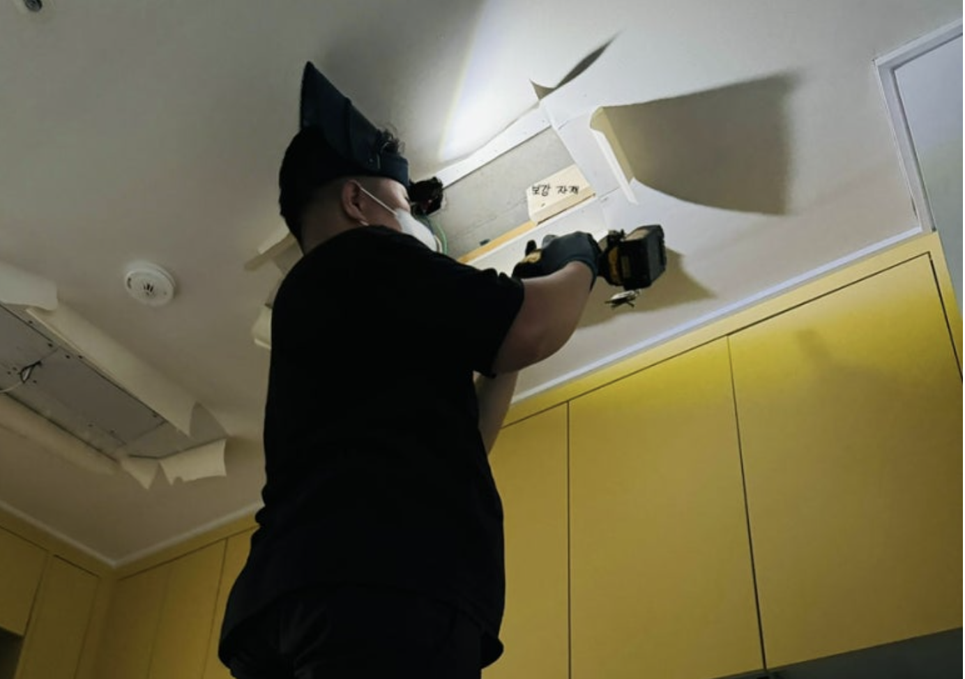 천장 석고 판을 자르려고 작업을 했어요