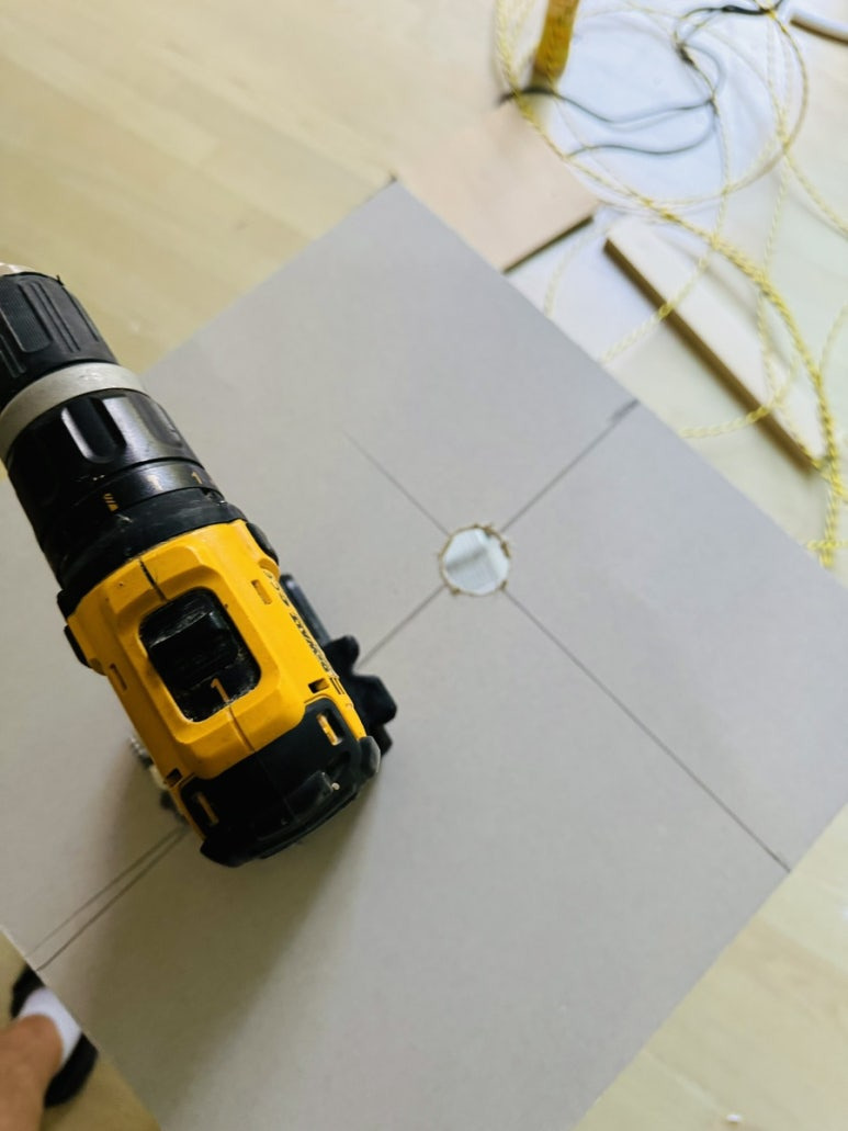석고보드를 잘 재단하여서 홀소로 구멍을 냅니다.