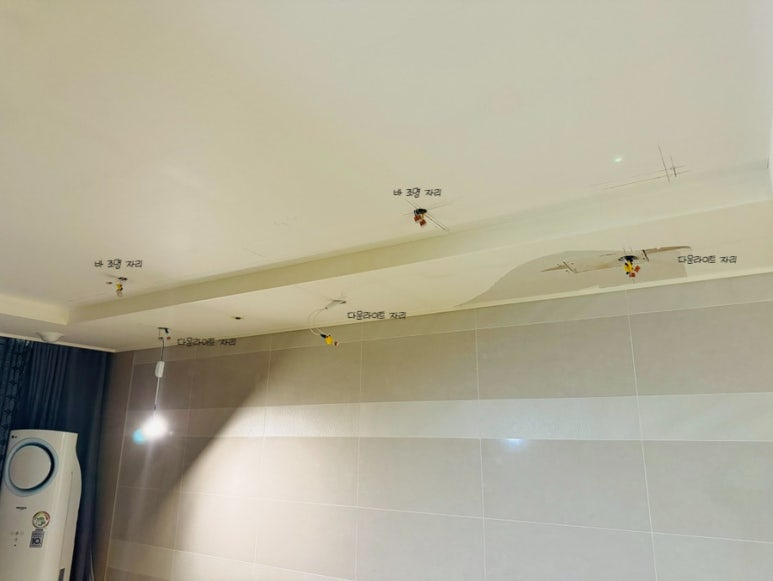 다운라이트 전등으로 실링팬자리에