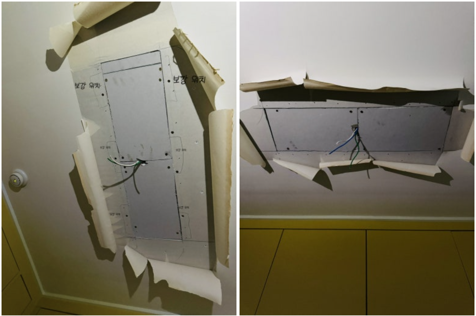 구멍이 뻥뚫려있어서 나무로 보강을하고